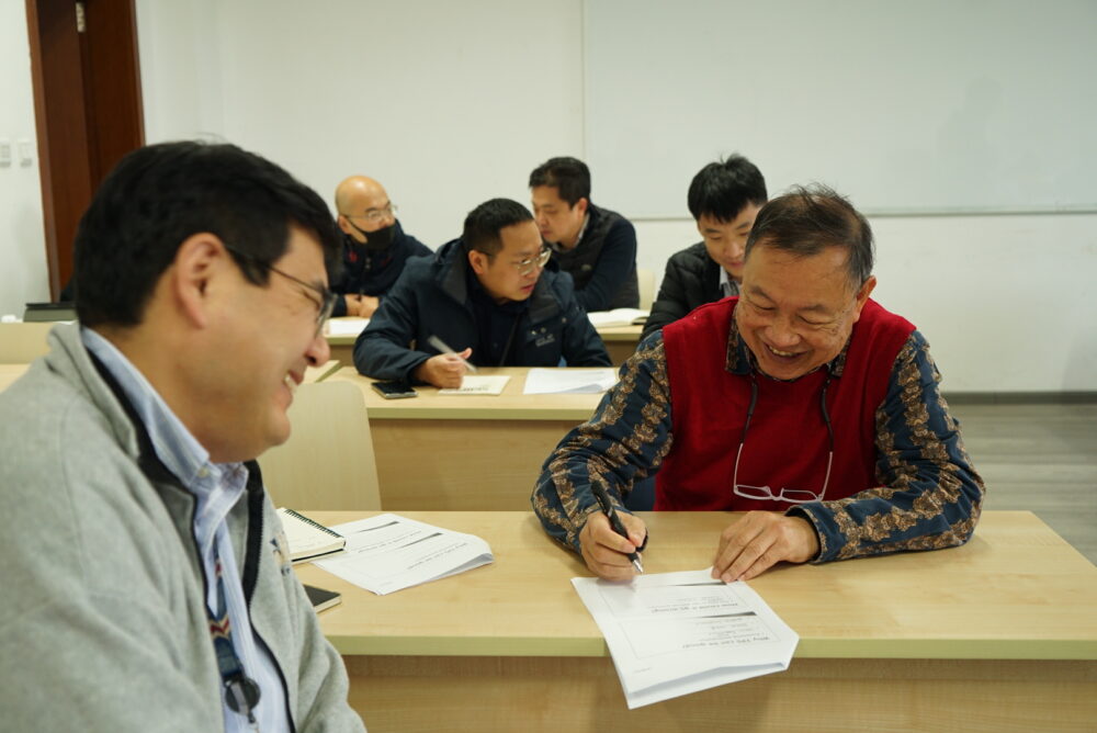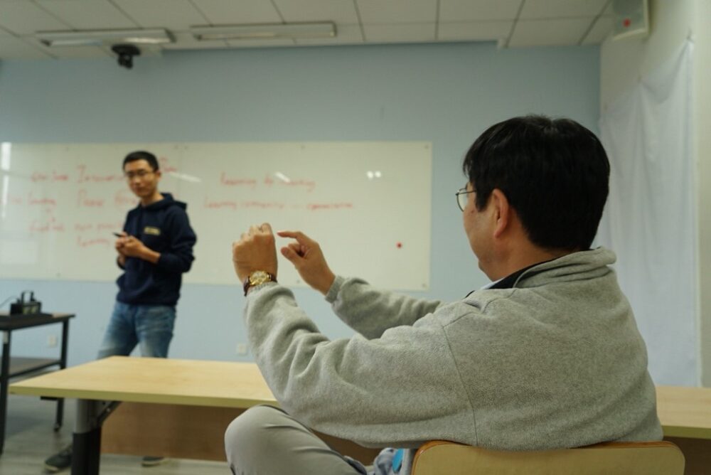 此次研讨会主要围绕“Think-Pair-Share(TPS)”教学法展开。权新峰老师首先介绍了这一教学方法,该方法实施的一个要点,是要求学生在结对讨论(pair)前先进行独立思考(think),以最大限度提升讨论中所有学生的参与度和积极性。