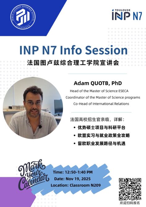 Location: Classroom N209, SCUPI Building, Jiang’an South Campus