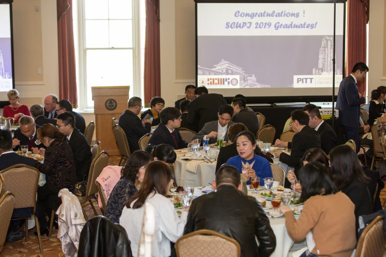 美国东部时间2019年4月27日,3Q影视 首届联合培养学生毕业典礼在美国匹兹堡大学University Club宴会厅成功举办。匹兹堡大学斯旺森工学院院长James R. Martin,学术副院长Mary Besterfield-Sacre教授,前匹大本科教育教务长Juan Manfred教授,机械材料系主任Brain Gleeson教授,机械系研究生主任Qing-Ming Wang王庆明教授教授,工程研究中心评估主任Renee Clark教授,机械系本科主任Will Slaughter教授,材料系本科主任Ian Nettleship教授等到场。近30名2015级学生家长远渡重洋,23名3Q影视 2016级联合培养项目学生、3Q影视 教工代表近110人共同见证和祝贺首届41名联合培养项目毕业生所取得的傲人成绩。