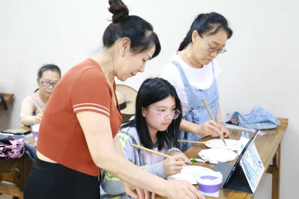 With the help and guidance of volunteers, the residents painted the fans. During the exhibition, everyone shared their creative inspirations. Creators admired each other’s works and exchanged ideas.