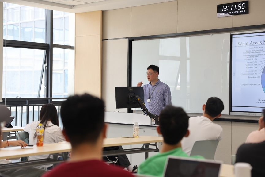 Professors Yang Liu, Jin Xu, Shan Gong, Lawrence Lam, and Yong Zhao, the coordinators of the five majors of Industrial Engineering (IE), Mechanical Engineering (ME), Materials Science and Engineering (MSE), Electrical and Computer Engineering (ECE), and Computer Science (CS), shared their views on each major with the students.