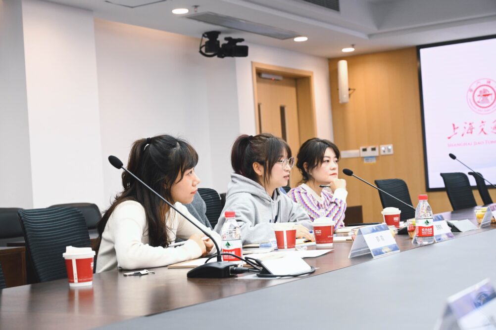 Dr. Wang Chong, leadership of JI. Dr. Ma Chengbin, Director of Tang Junyuan Center for Innovation and Entrepreneurship, Ms. Wu Qi, Director of the Student Affairs Office, Ms. Wei Jingxin, Director of the Admission Office, Ms. Sun Shuai, Alumni Specialist of the Office of Development and Cooperation, Mr. Li Qiujian, Student Counselor, Mr. Liu Zhizhuo, Secretary of the CYL, and Ms. Sheng Siyuan, Career Development Counselor, took part in the meeting.