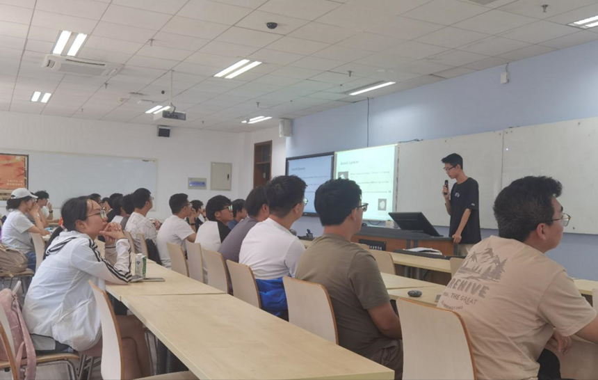 The students attentively listened to Zhang Yang, a student from the ME major, about his research experience and related advice.