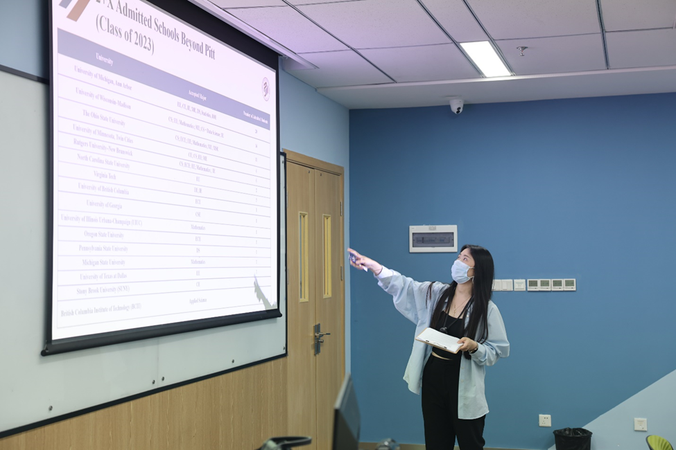 On May 22nd, in order to deepen the concept of education in the new era and to promote the cultivation of new generations of students, Sichuan University-Pittsburgh Institute held a teaching seminar with the theme of Undergraduate Joint Cultivation and Graduate Studies Program Policy Analysis. The speakers were Ms. Lan Luo and Ms. Keru Chen from the Career Advising Group. Professor TsunZee Mai, Associate Dean for Academic Affairs, and more than 30 faculty members had an in-depth discussion on undergraduate joint cultivation, graduate pathways, and faculty collaboration mechanisms.