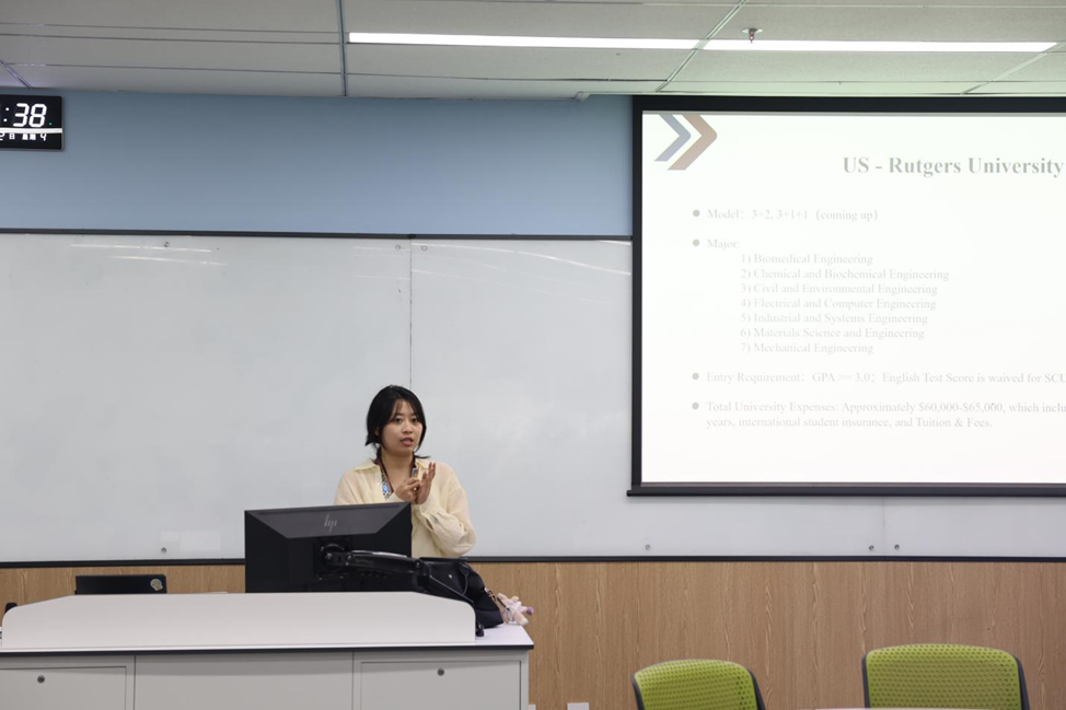 In the analysis of the undergraduate joint cultivation program, Ms. Luo explained in detail the academic arrangements of different partner institutions. She emphasized that some institutions have clear requirements on GPA standards and specific pre-requisite courses, so it is very important for students to have early academic planning for further studies. The construction of postgraduate pathways is also effective, and SCUPI has established special cooperation with more than ten international universities in Europe, America, and Asia. Ms. Chen systematically sorted out the key information of each partner institution, such as the characteristics of master’s degree cultivation, the distribution of advantageous majors, enrollment requirements, and tuition policies.