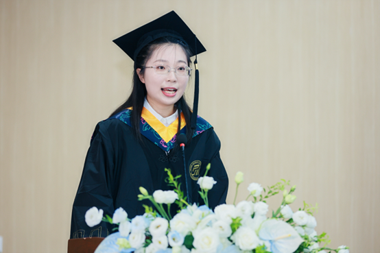 Alumna representative Nancy Xu from the class of 2019 extended her heartfelt congratulations and advised the new graduates to embrace changes and uncertainties as opportunities for growth. She encouraged them to dream big, face challenges head-on, and seize opportunities.