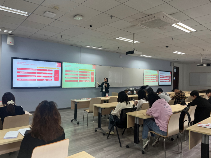 Emlyon Business School Postgraduate Program Seminar was held on April 23rd. Ms. Chen, an admissions officer from Emlyon Business School, not only described the unique charm of France but also introduced the significant advantages of Emlyon Business School. Besides, she emphasized the close cooperation between the school and industries, as well as its comprehensive career support system, providing students with the resources available to them. Subsequently, Ms. Chen elaborated on the course structure and diverse curriculum content, highlighting the learning focus of the three specialized stages, introducing several programs in detail, including the MSC in Digital Transformation & Data Science, Lifestyle & Marketing Management and Finance & Strategy Consulting & Innovation. This presentation provided useful information for students who aspire to further their studies in these fields. Through this seminar, students obtained detailed information about courses and gained a more intuitive understanding of the educational disciplines and academic atmosphere of Emlyon Business School.